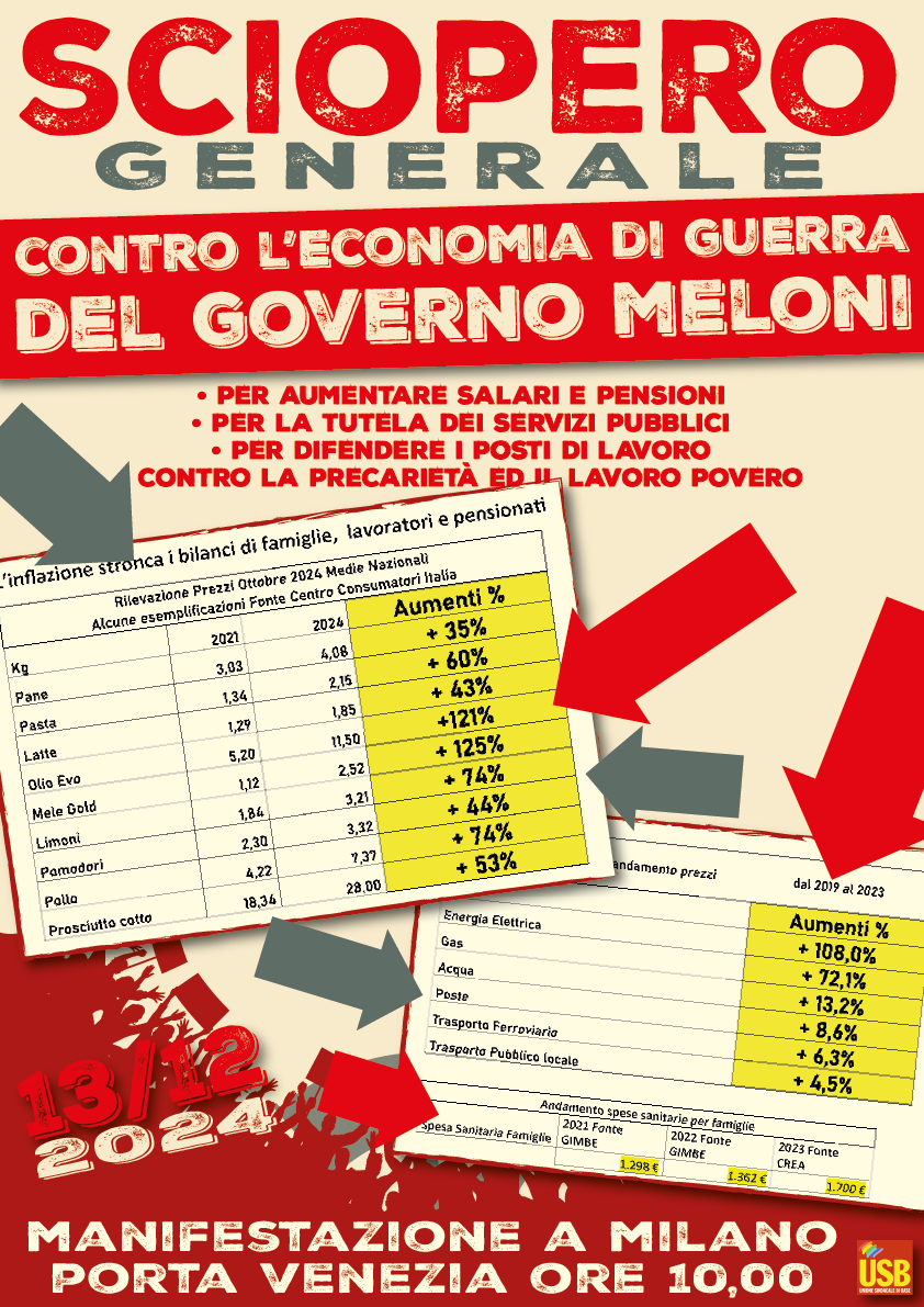 Sciopero Generale del 13 Dicembre 2024 – ROMA P.le Tiburtino ore 09.30 – Milano Piazza Venezia ore 10.00 –